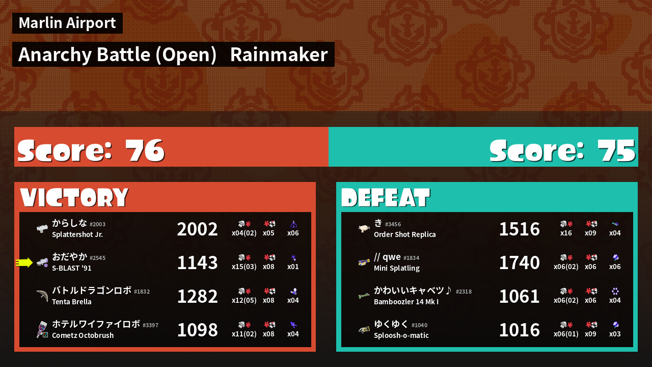 | Mode | Rainmaker - Anarchy Battle (Open) |