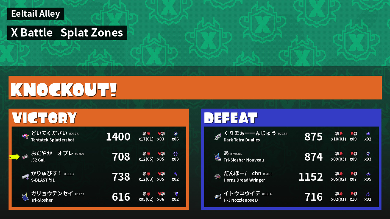 | Mode | Splat Zones - X Battle |
