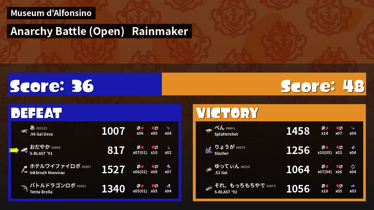 | Mode | Rainmaker - Anarchy Battle (Open) |