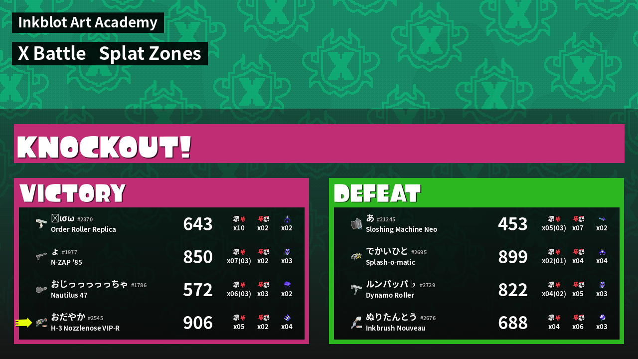 | Weapon | H-3 Nozzlenose VIP-R ( Suction Bomb / Triple Inkstrike) |