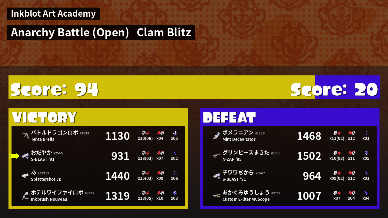 | Mode | Clam Blitz - Anarchy Battle (Open) |