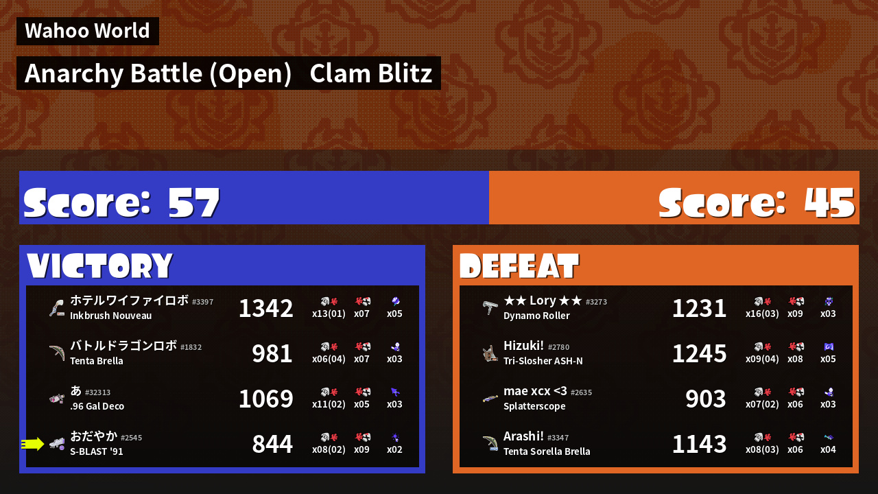 | Mode | Clam Blitz - Anarchy Battle (Open) |