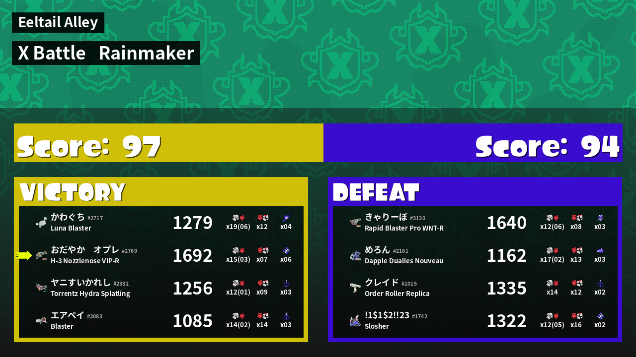 | Weapon | H-3 Nozzlenose VIP-R ( Suction Bomb / Triple Inkstrike) |