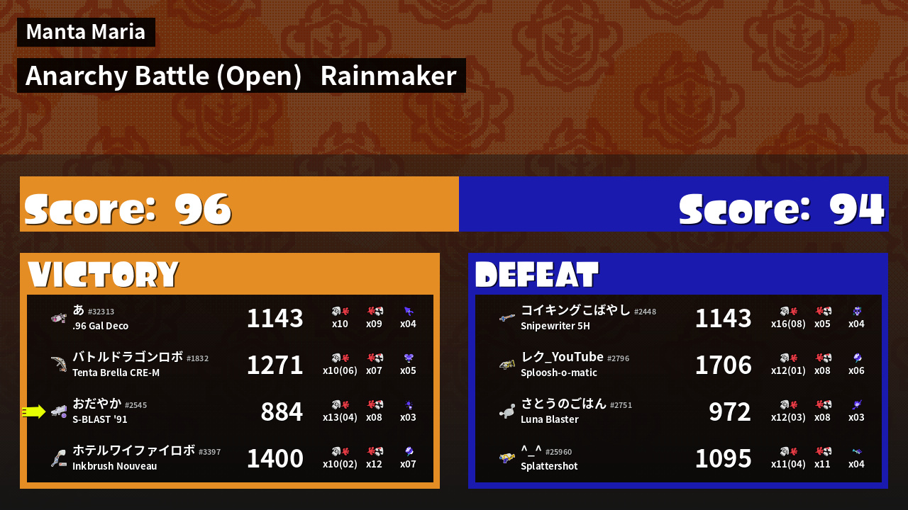 | Mode | Rainmaker - Anarchy Battle (Open) |