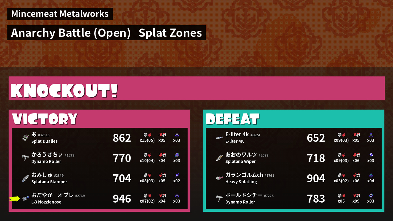 | Mode | Splat Zones - Anarchy Battle (Open) |
