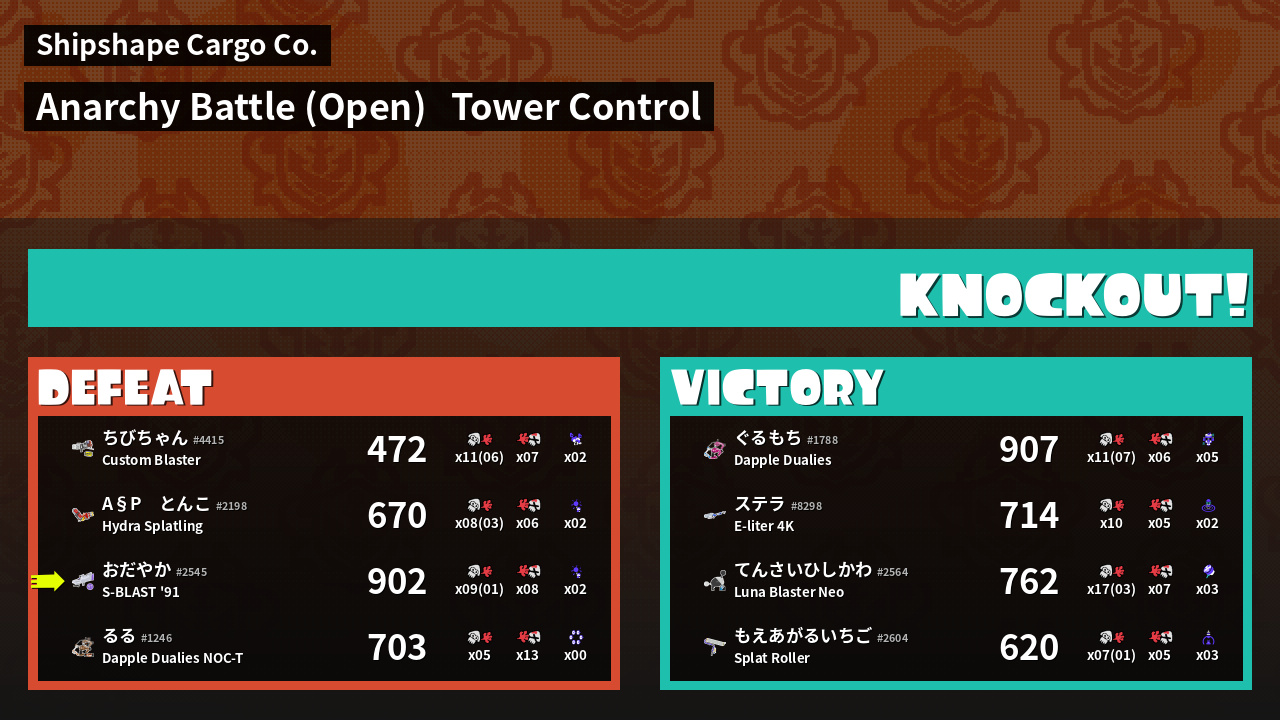 | Medals | #1 Turf Inker #1 Enemy Splatter #1 Tower Stopper |