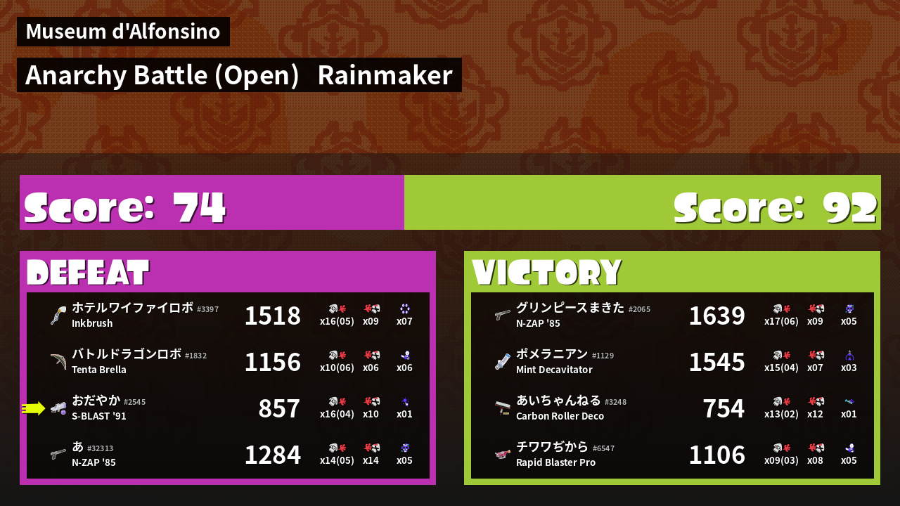 | Mode | Rainmaker - Anarchy Battle (Open) |