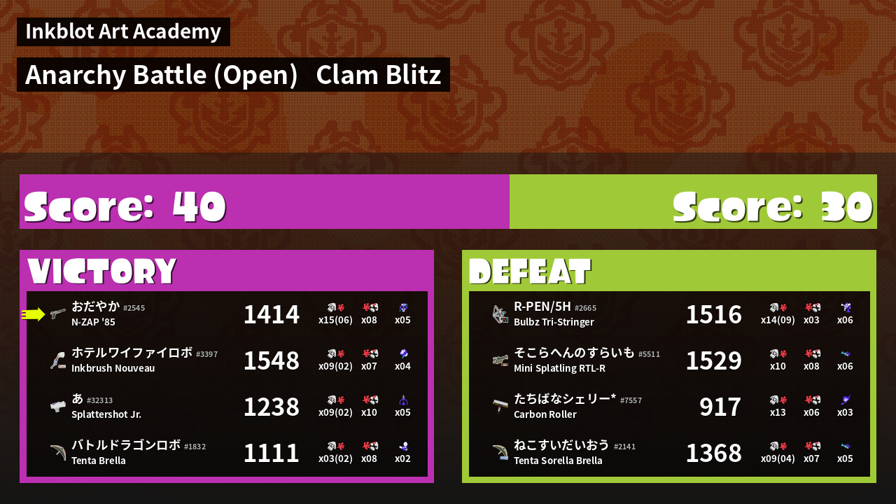 | Mode | Clam Blitz - Anarchy Battle (Open) |