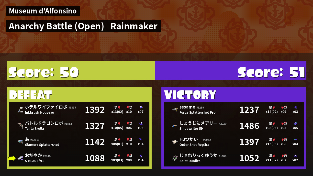 | Mode | Rainmaker - Anarchy Battle (Open) |