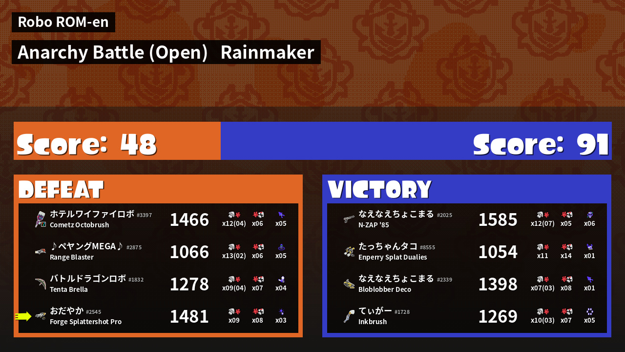 | Mode | Rainmaker - Anarchy Battle (Open) |