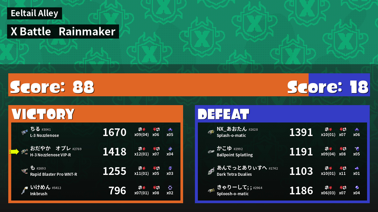 | Weapon | H-3 Nozzlenose VIP-R ( Suction Bomb / Triple Inkstrike) |