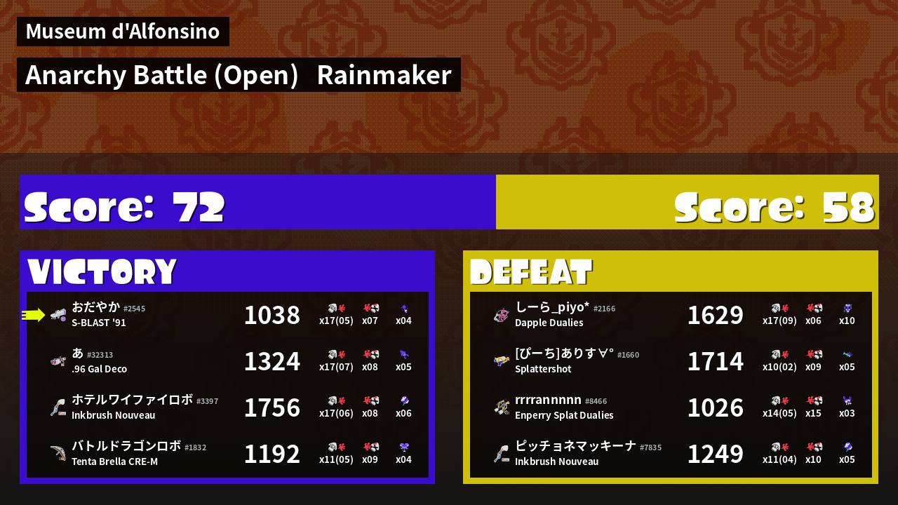| Mode | Rainmaker - Anarchy Battle (Open) |