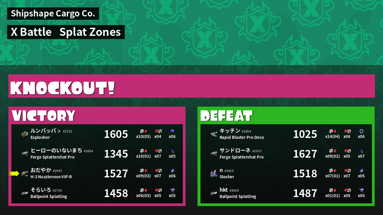 | Weapon | H-3 Nozzlenose VIP-R ( Suction Bomb / Triple Inkstrike) |