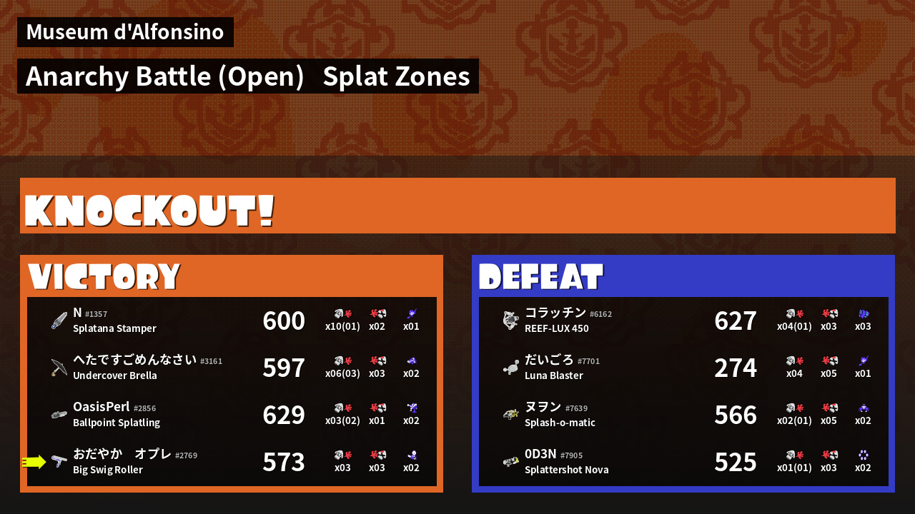 | Mode | Splat Zones - Anarchy Battle (Open) | ||