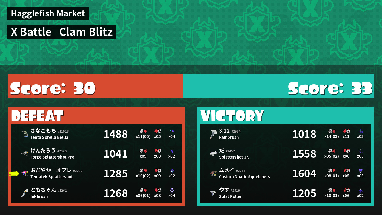 | Weapon | Tentatek Splattershot ( Splat Bomb / Triple Inkstrike) | ||