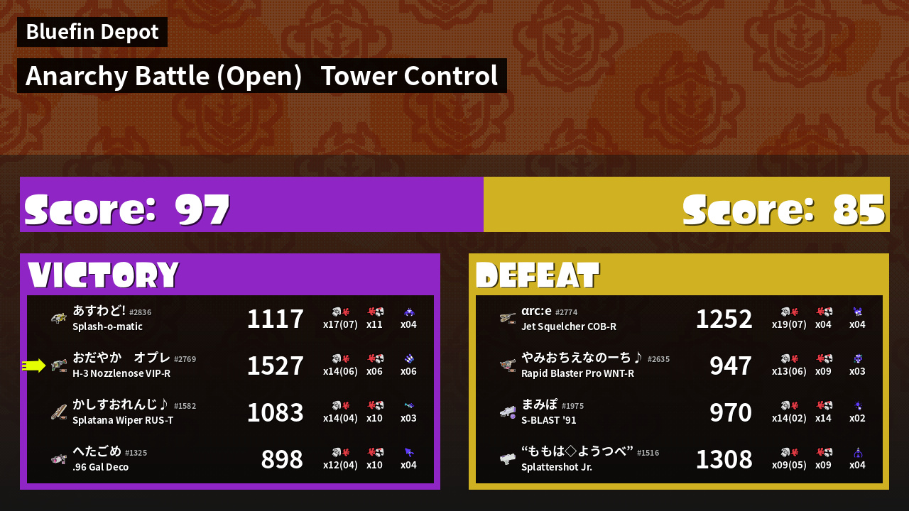 | Mode | Tower Control - Anarchy Battle (Open) |