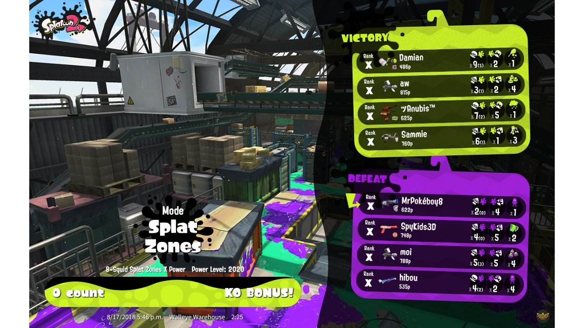 | Mode | Splat Zones - Ranked Battle | ||||||||||||||||||||||||||||||||||||||||