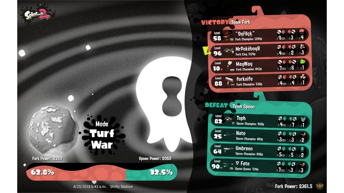 | Splatfest Power | 2,361.5 | |||||||||||||||||||||||||||||||||||||