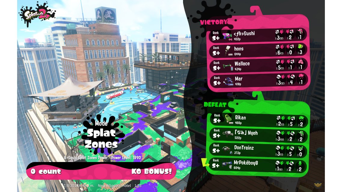 | Mode | Splat Zones - Ranked Battle | ||||||||||||||||||||||||||||||||||||||||