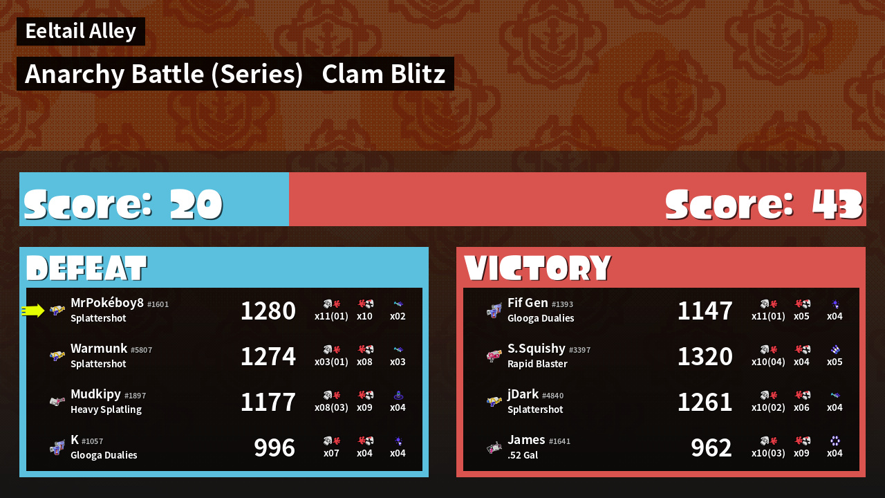 | Mode | Clam Blitz - Anarchy Battle (Series) | ||