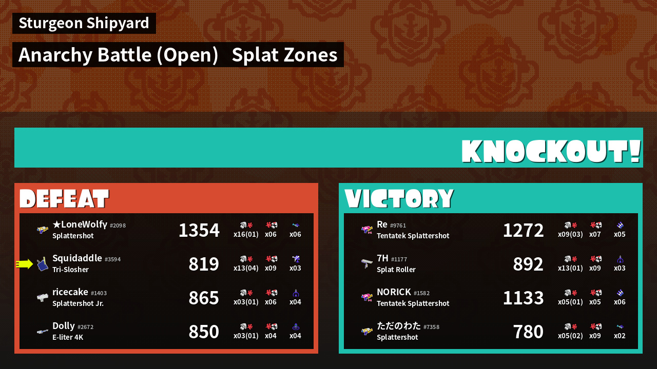 Kills / Deaths | 9 + 4 / 9 = Kill Ratio: 1.00 | ||