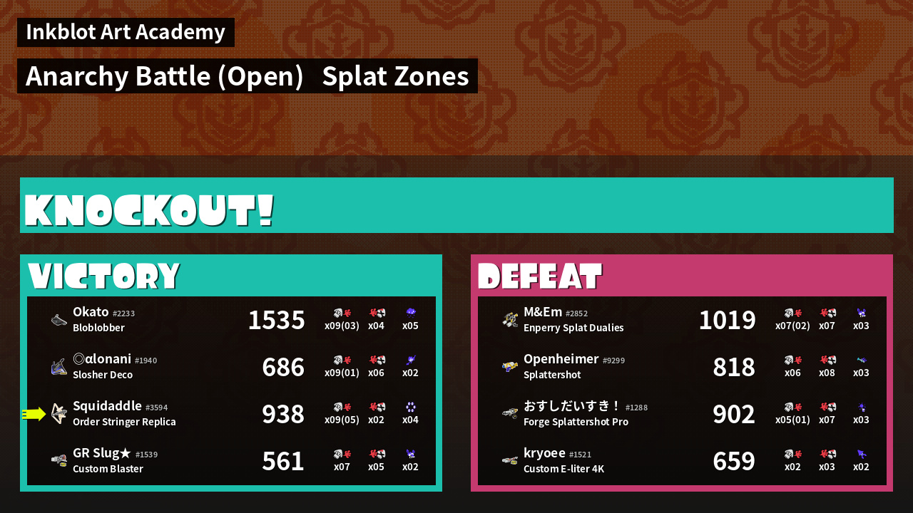 | Mode | Splat Zones - Anarchy Battle (Open) | ||
