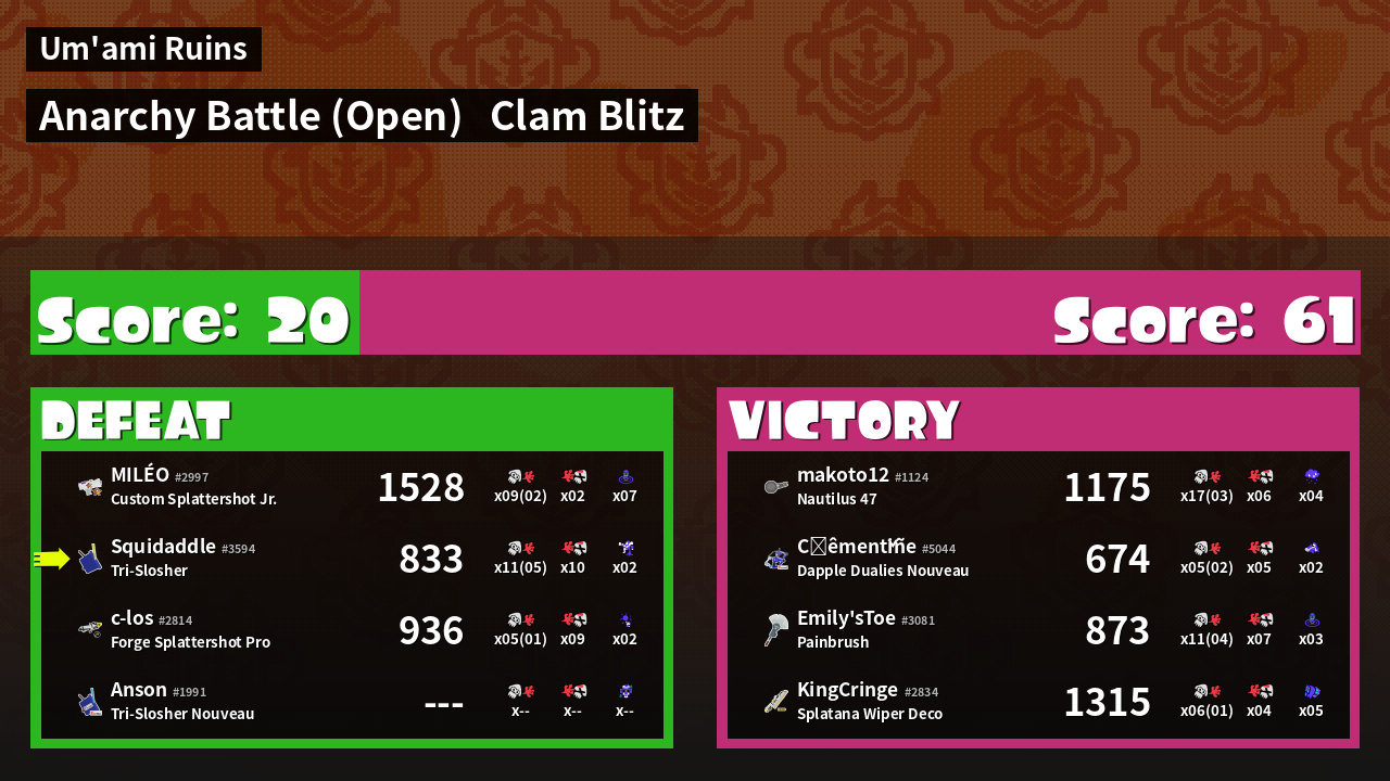 | Mode | Clam Blitz - Anarchy Battle (Open) | ||