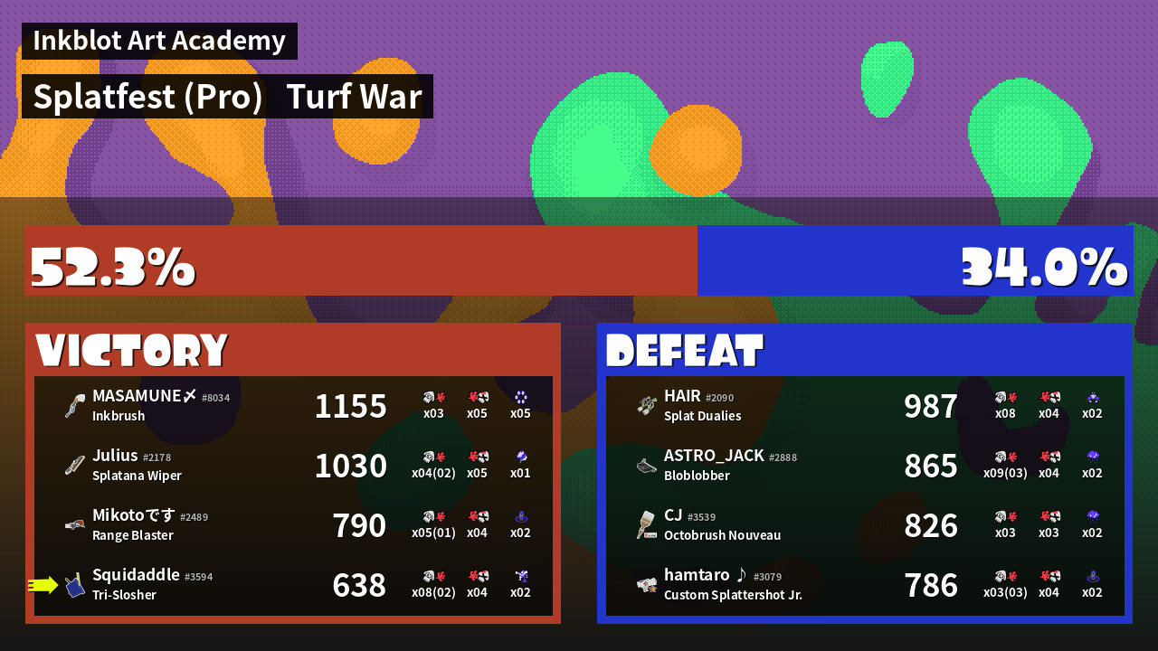 | Medals | #1 Overall Splatter #1 Popular Target #1 Super Jump Spot | ||