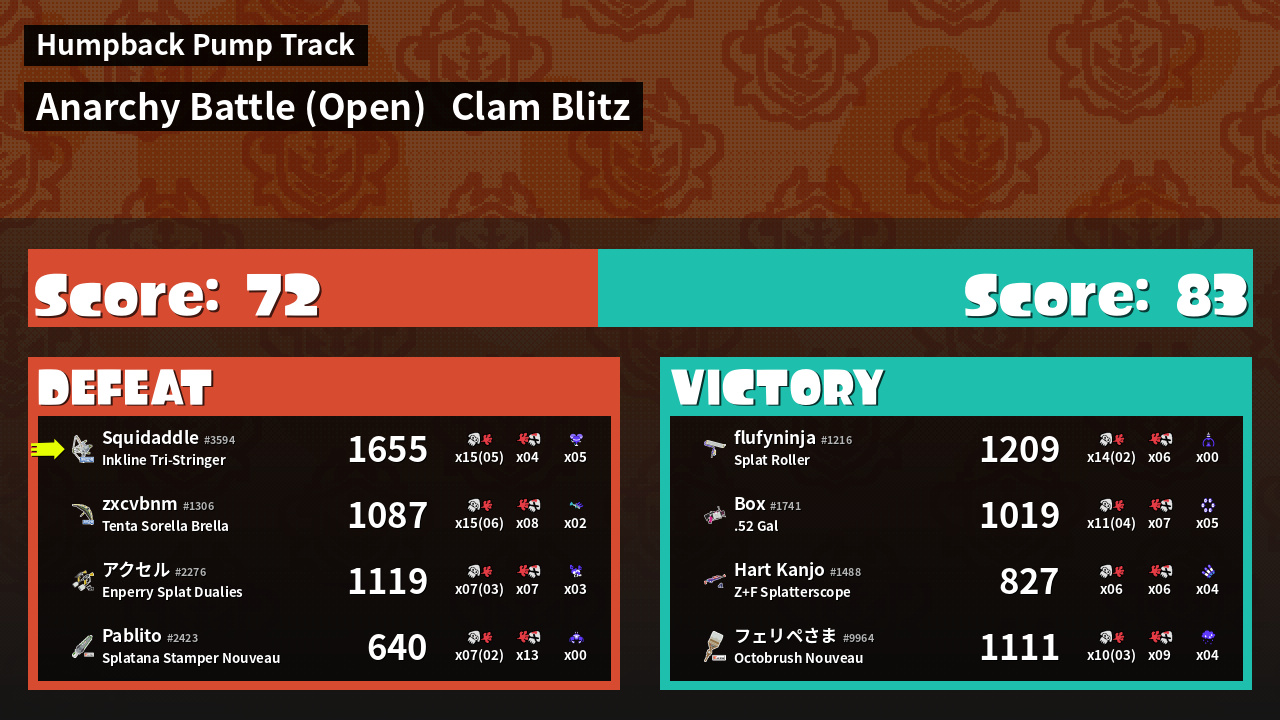 | Mode | Clam Blitz - Anarchy Battle (Open) | ||