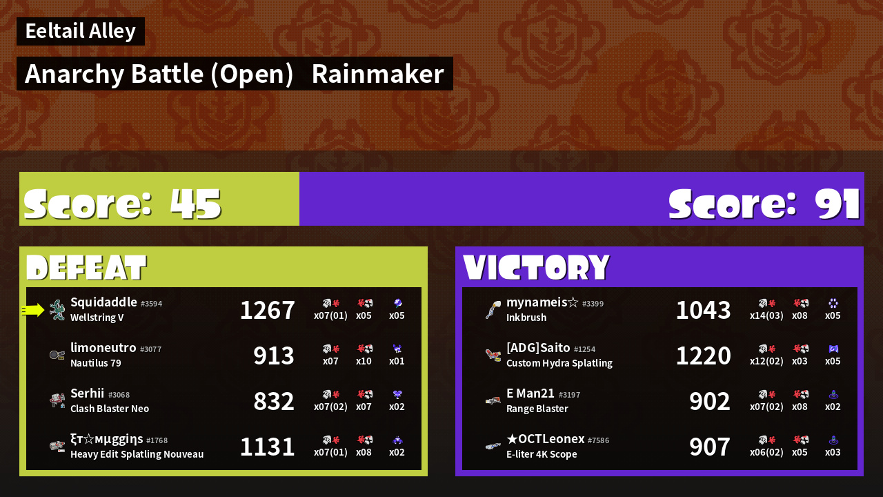 | Mode | Rainmaker - Anarchy Battle (Open) | ||
