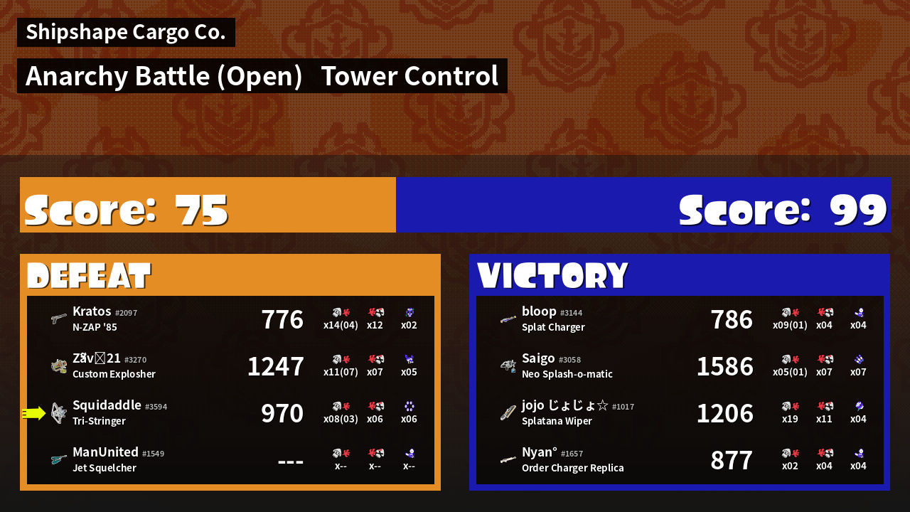 | Mode | Tower Control - Anarchy Battle (Open) | ||