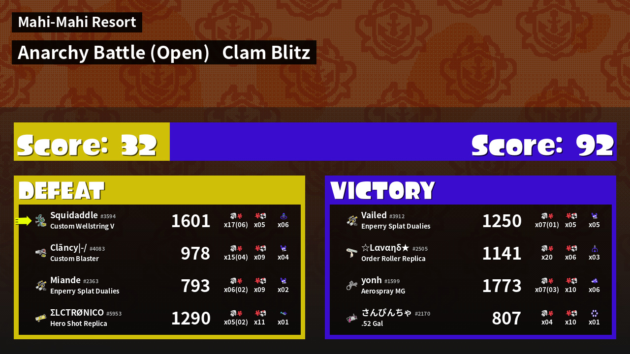 | Mode | Clam Blitz - Anarchy Battle (Open) | ||