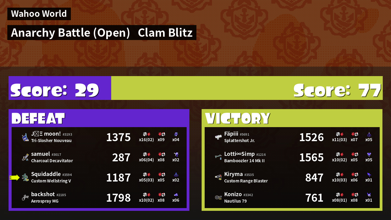 | Mode | Clam Blitz - Anarchy Battle (Open) | ||