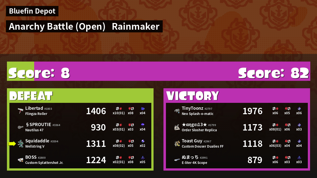 | Medals | #1 Popular Target #1 Splat Assister #1 Rainmaker Carrier | ||