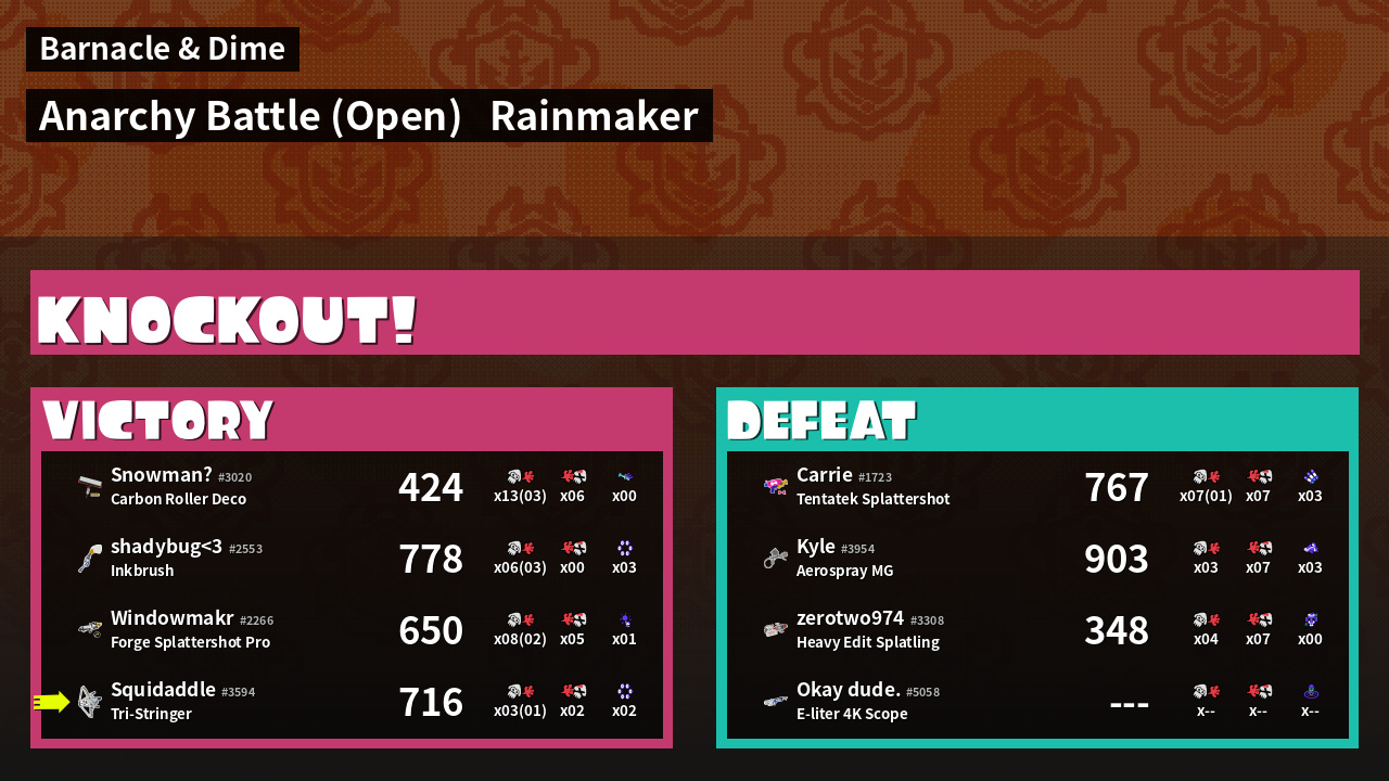 | Mode | Rainmaker - Anarchy Battle (Open) | ||