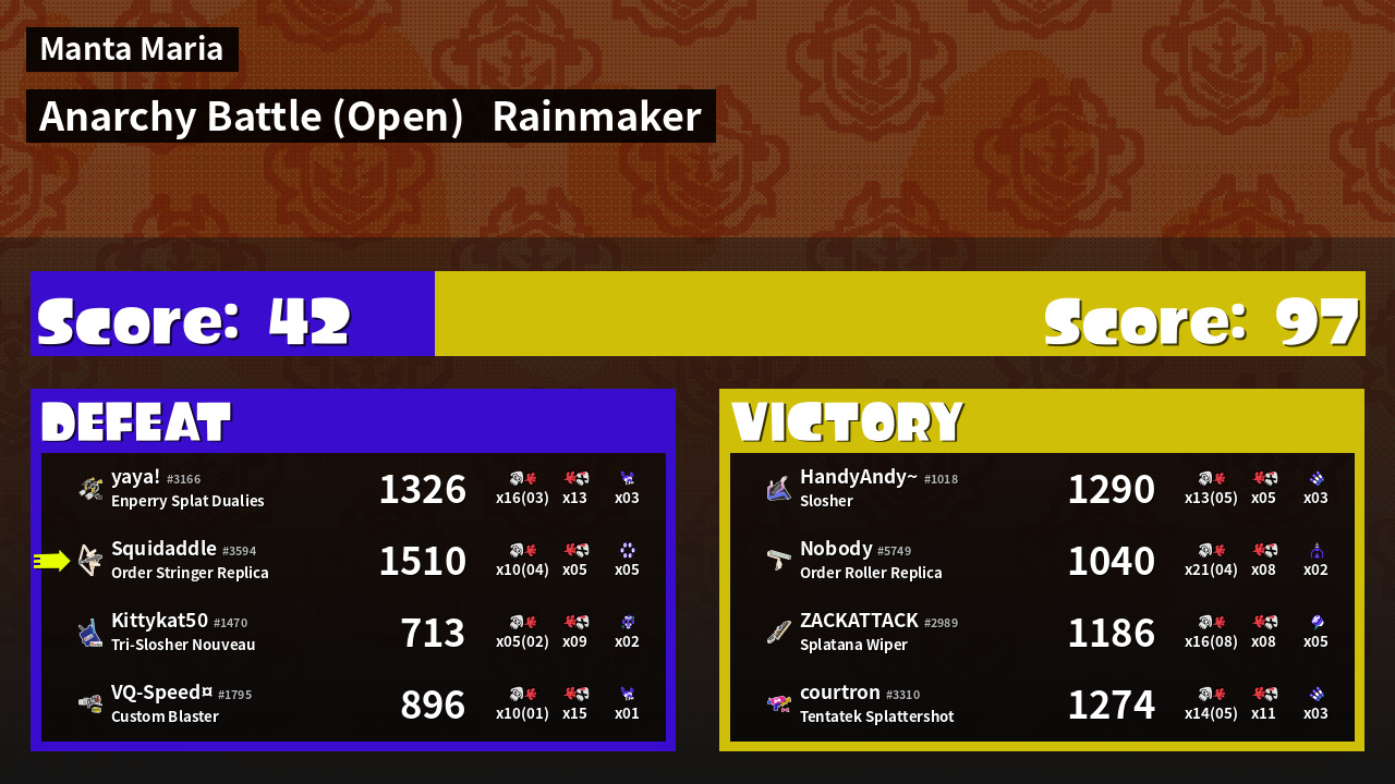 | Mode | Rainmaker - Anarchy Battle (Open) | ||