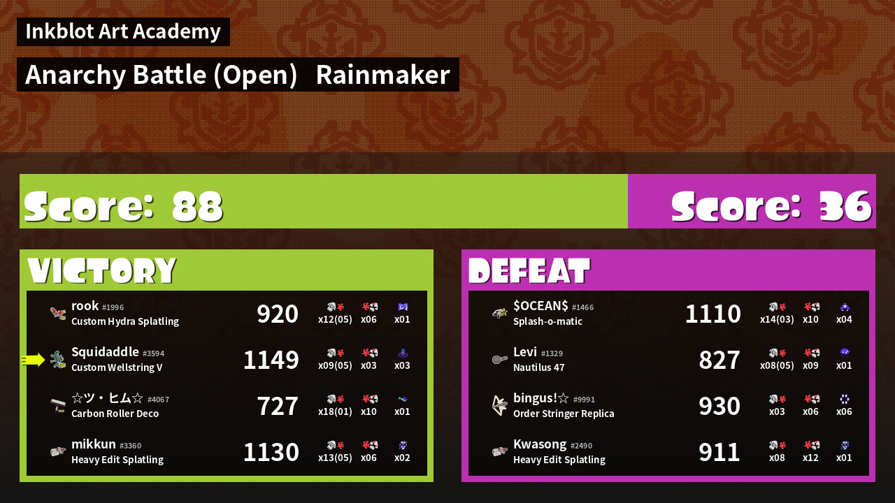 | Mode | Rainmaker - Anarchy Battle (Open) | ||