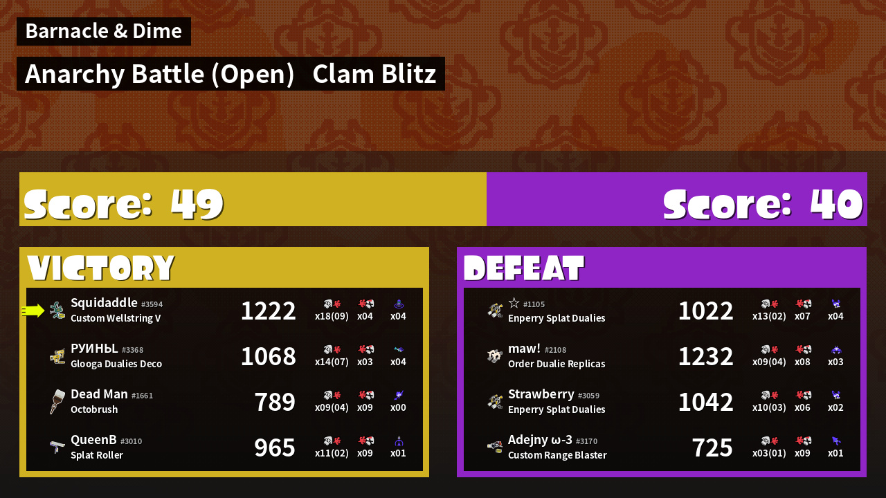 | Mode | Clam Blitz - Anarchy Battle (Open) | ||