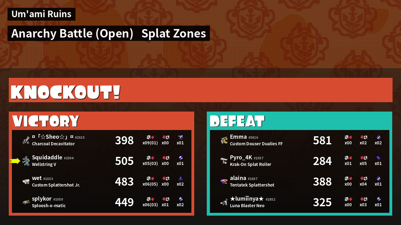 | Mode | Splat Zones - Anarchy Battle (Open) | ||