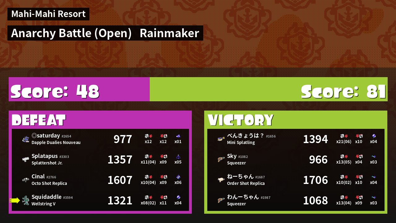 | Mode | Rainmaker - Anarchy Battle (Open) | ||