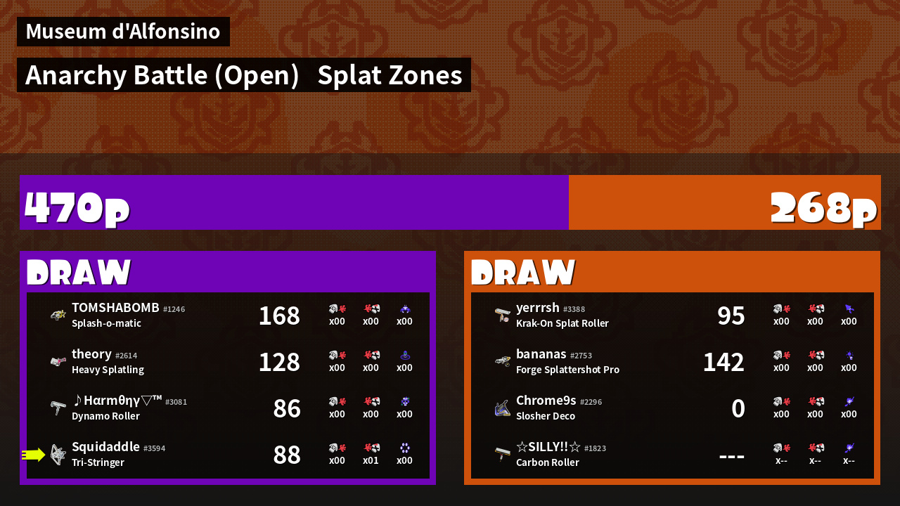 | Mode | Splat Zones - Anarchy Battle (Open) | ||