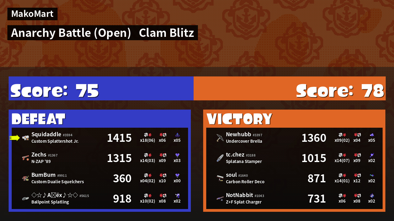 | Mode | Clam Blitz - Anarchy Battle (Open) | ||
