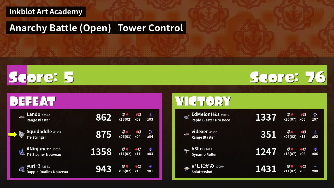 | Mode | Tower Control - Anarchy Battle (Open) | ||