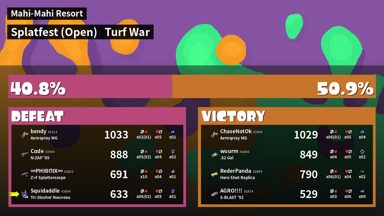 | Medals | #1 Splat Assister #1 Base Defender #1 Damage Taker | ||