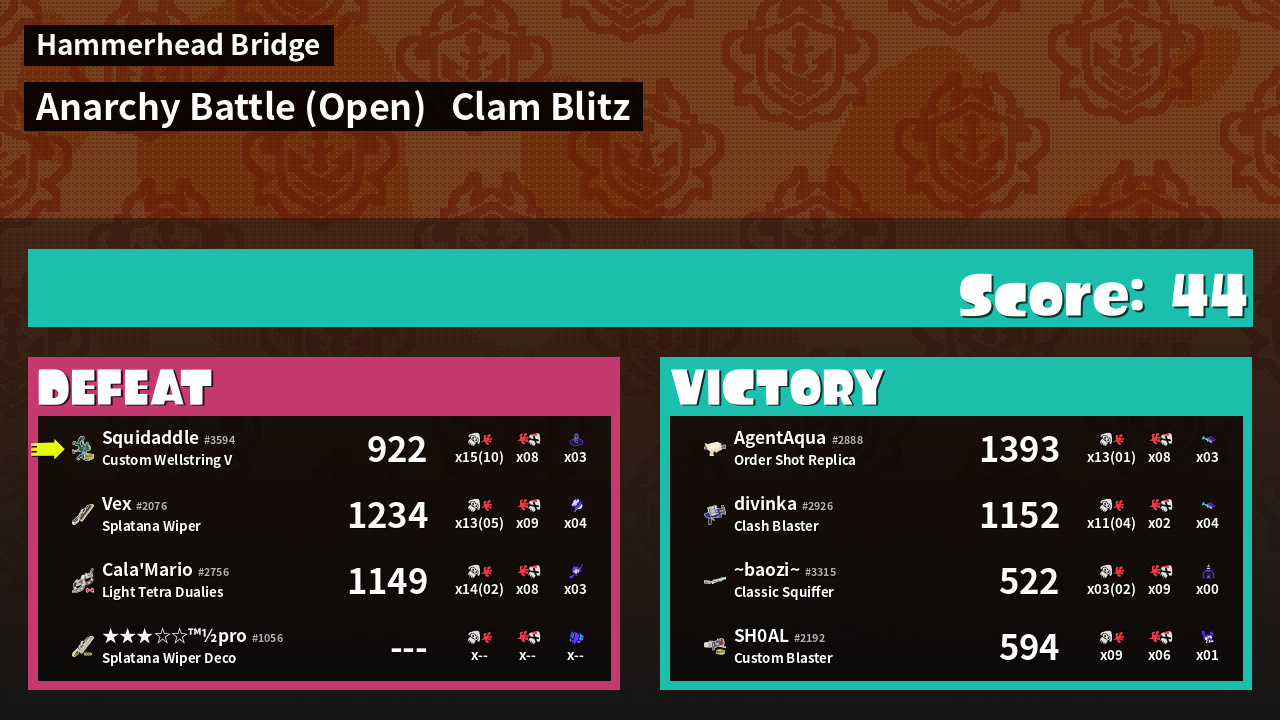 | Mode | Clam Blitz - Anarchy Battle (Open) | ||