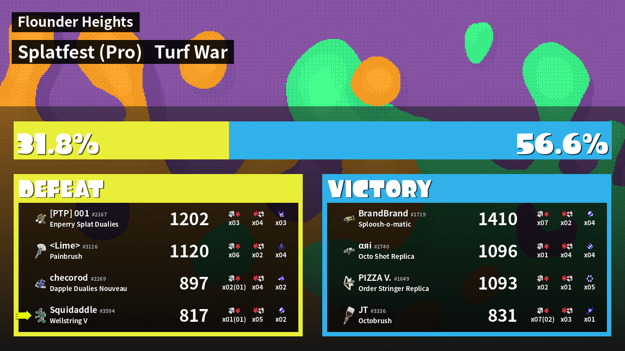| Mode | Turf War - Splatfest (Pro) | ||