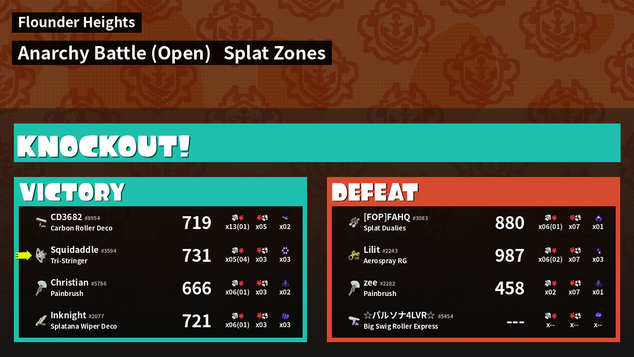 | Mode | Splat Zones - Anarchy Battle (Open) | ||