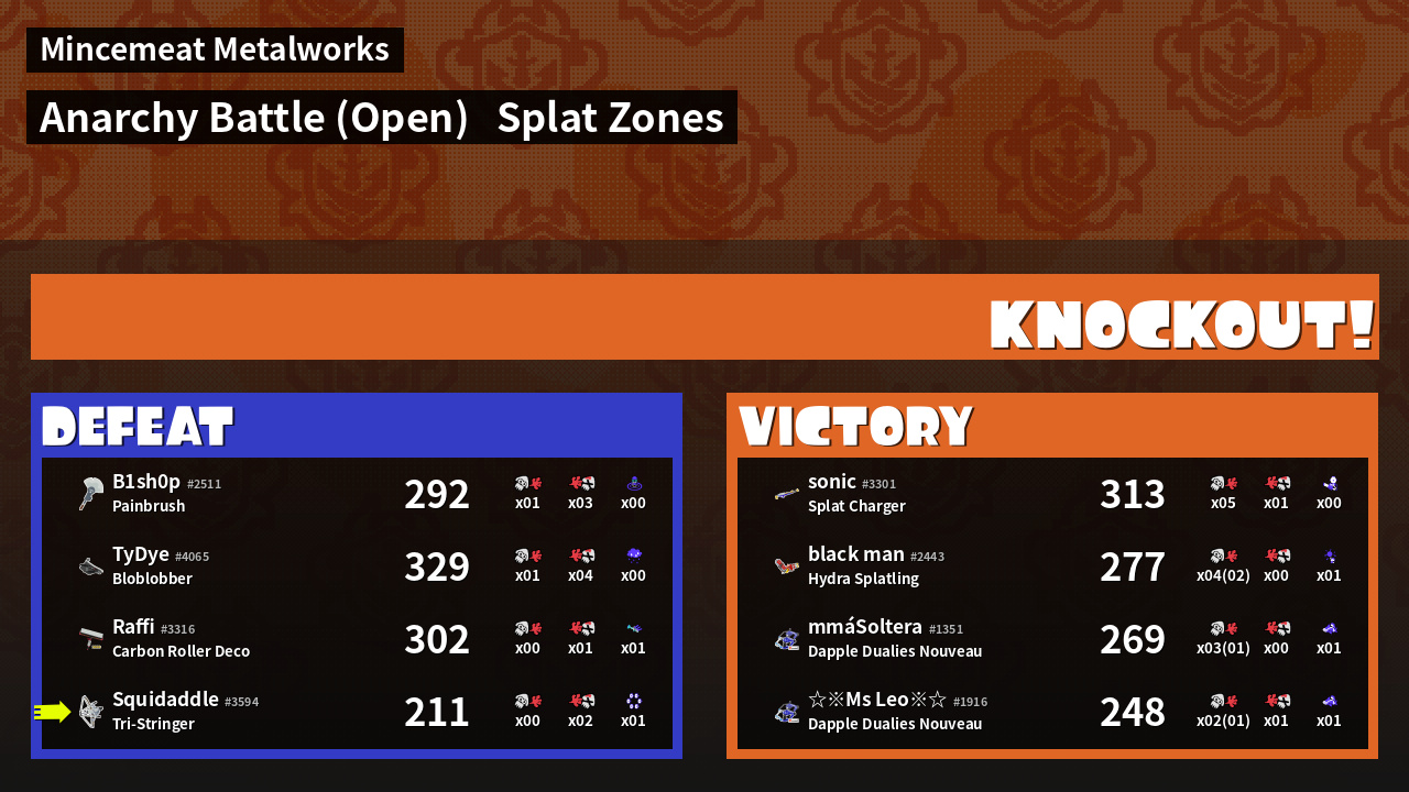 | Mode | Splat Zones - Anarchy Battle (Open) | ||