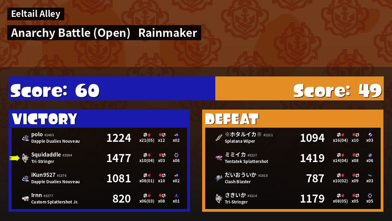 | Mode | Rainmaker - Anarchy Battle (Open) | ||