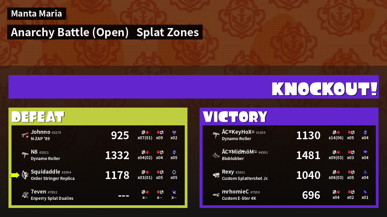 | Mode | Splat Zones - Anarchy Battle (Open) | ||
